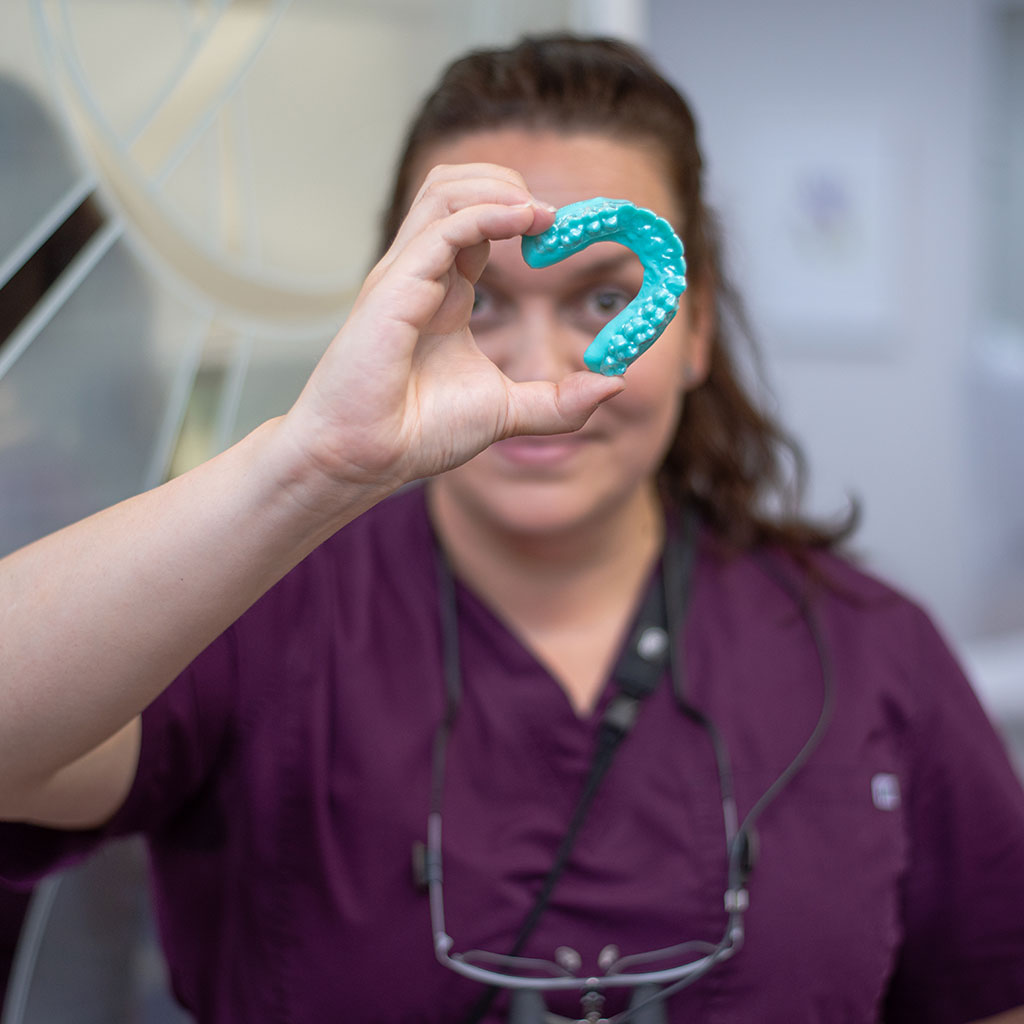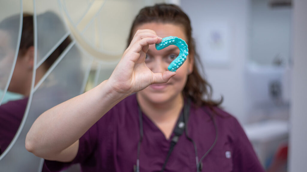 Markettien ”keitä ja pure” -suojiin verrattuna hammaslääkärin ja teknikon valmistama suoja on ylivoimainen sekä istuvuudeltaan että suojausteholtaan. Prosessi on nopea ja vaivaton.